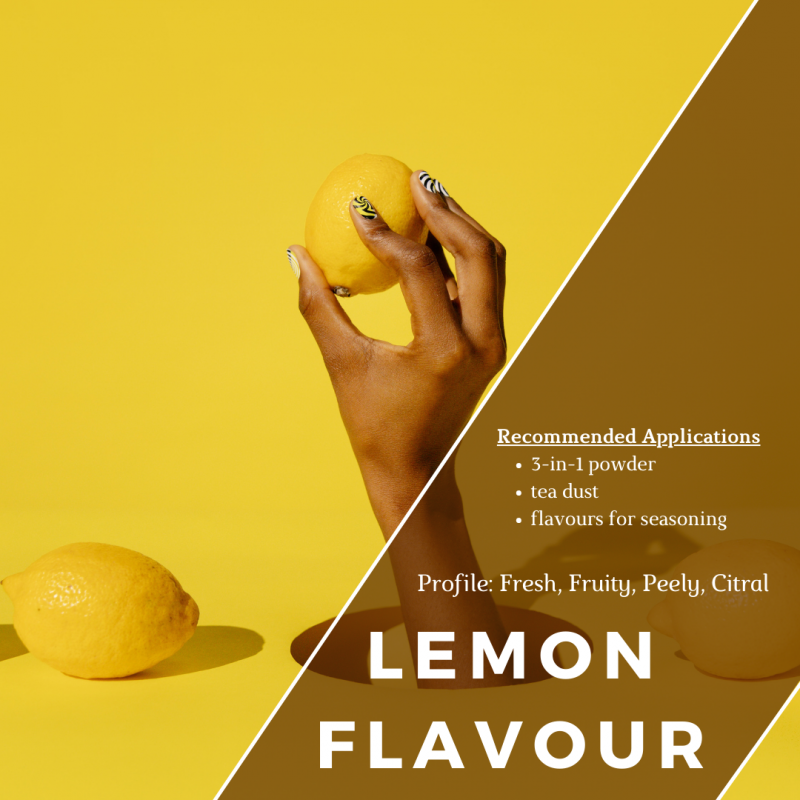 Lemon Powder Flavour has a Fresh, fruity, peely & citral profile.