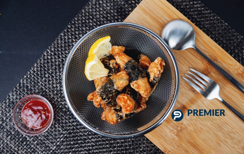 BonELESS CHICKEN LEGS, CUT AND MARINATED IN SAVOURY SEASONING, WRAPPED IN JAPANESE NORI (SEAWEED)