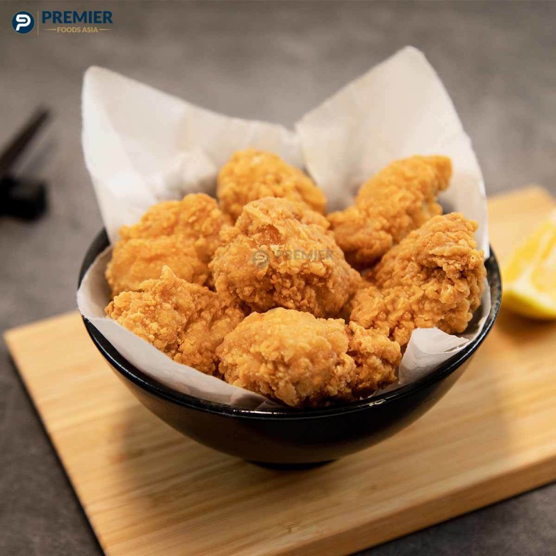BITE-SIZED BonELESS CHICKEN LEGS MARINATED WITH SAVOURY SEASONING, COATED WITH CRISPY BREADCRUMB. SIMPLY DELICIOUS!