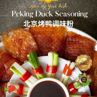 Peking Duck, a dish from Beijing that has been prepared since the imperial era. The meat is characterized by its thin, crisp skin, with authentic versions of the dish serving mostly the skin and little meat, sliced in front of the diners by the cook. Ducks bred specially for the dish are slaughtered after 65 days and seasoned before being roasted in a closed or hung oven. The meat is often eaten with spring onion, cucumber and sweet bean sauce with pancakes rolled around the fillings, in addition pickled radish and other sauces are being used.