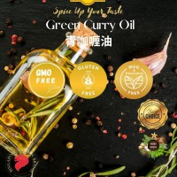 Green Curry Oil, is the extracted oil traditionally made by pounding in a mortar green chillies, shallots, garlic, galangal, lemongrass, kaffir lime leaves, cilantro roots (coriander), and cumin seeds, white peppercorns, shrimp paste and salt.