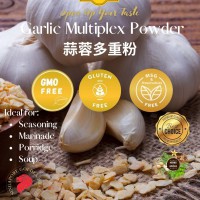 Garlic Multiplex Powder, a mixed spice that is derived from infused, raw, dried, fried and roasted garlic and used in cooking for flavor enhancement. The process of making multi garlic powder includes drying and dehydrating, then powdering it through machinery or home-based appliances depending on the scale of production. The benefits is to better enhance and strengthen the food aroma or taste in comparison to natural garlic powder. Low in bacteria count and ideal for seasoning, marinade, porridge or soup base.