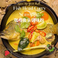 Fish Head Curry, a dish in Indonesian, Malaysian and Singaporean cuisines with mixed Indian and Chinese origins. The head of a red snapper is stewed in a Kerala-style curry with assorted vegetables such as okra and eggplants. It is usually served with either rice or bread, or as a shared dish.